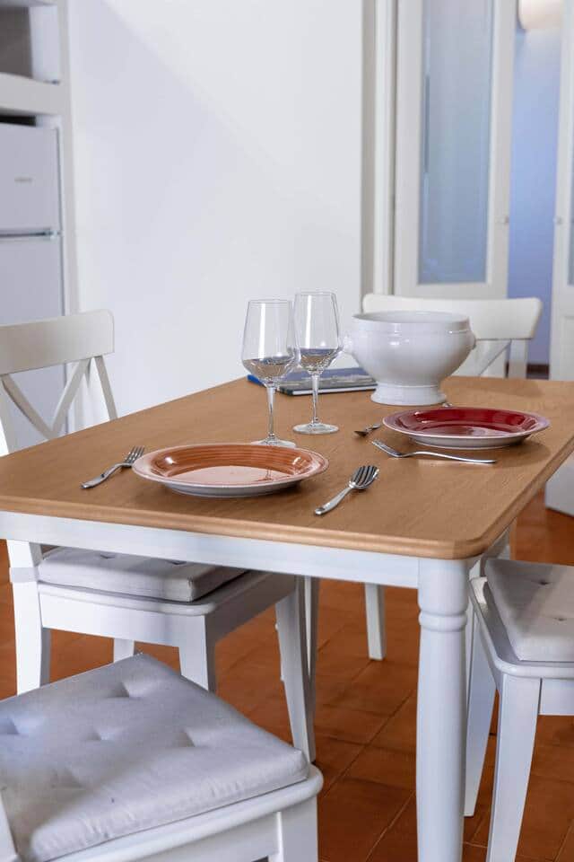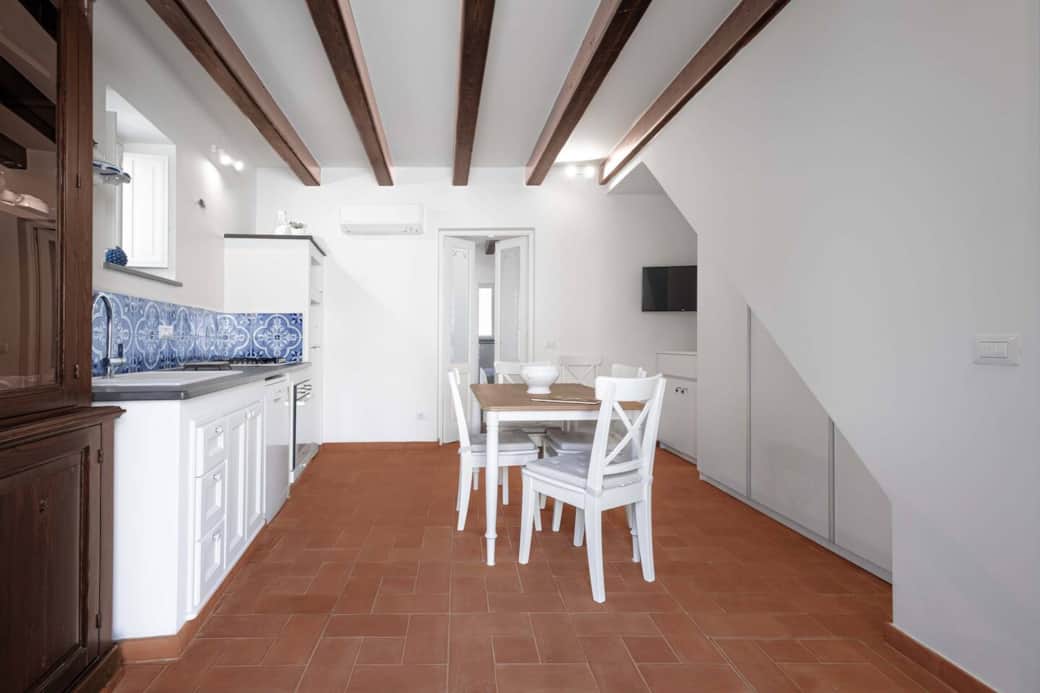 L'ingresso indipendente dalla piazzetta conduce alla zona giorno con cucina in perfetto stile eoliano, caratterizzata da piano in pietra lavica e dettagli in maiolica. La camera matrimoniale è accogliente e riservata, ideale per rilassarsi dopo una giornata tra calette e tramonti.